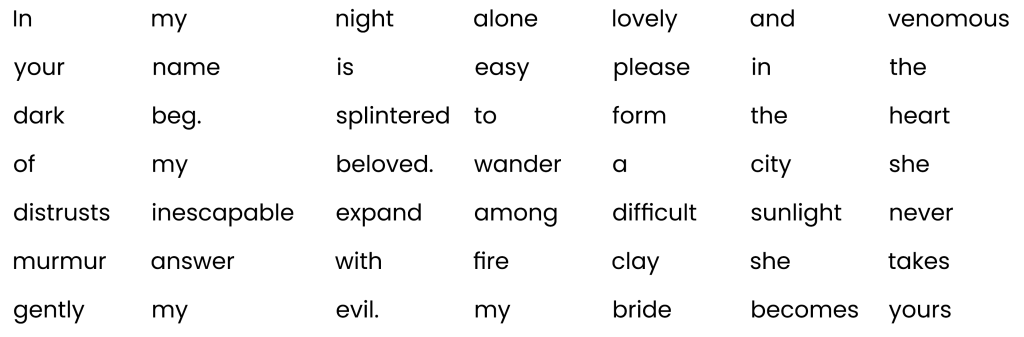 Marcella Haddad is the author of WITCH HOUSE (Ghost City Press, 2022) and her novella, SIDEWINDER, is the winner of Gateway Literary Press’s Fabulist/Surrealist Novella Competition and is forthcoming in 2023. She earned her MFA from UMass Amherst and was a Tin House YA 2022 Scholar. She teaches writing at Grubstreet and Clarion West and is the Managing Editor of Moonflake Press. Her work has appeared in Variant Literature, Okay Donkey, Empty Room Radio, Apparition Lit, and others. You can find her in a tree or at marcellaphaddad.com
